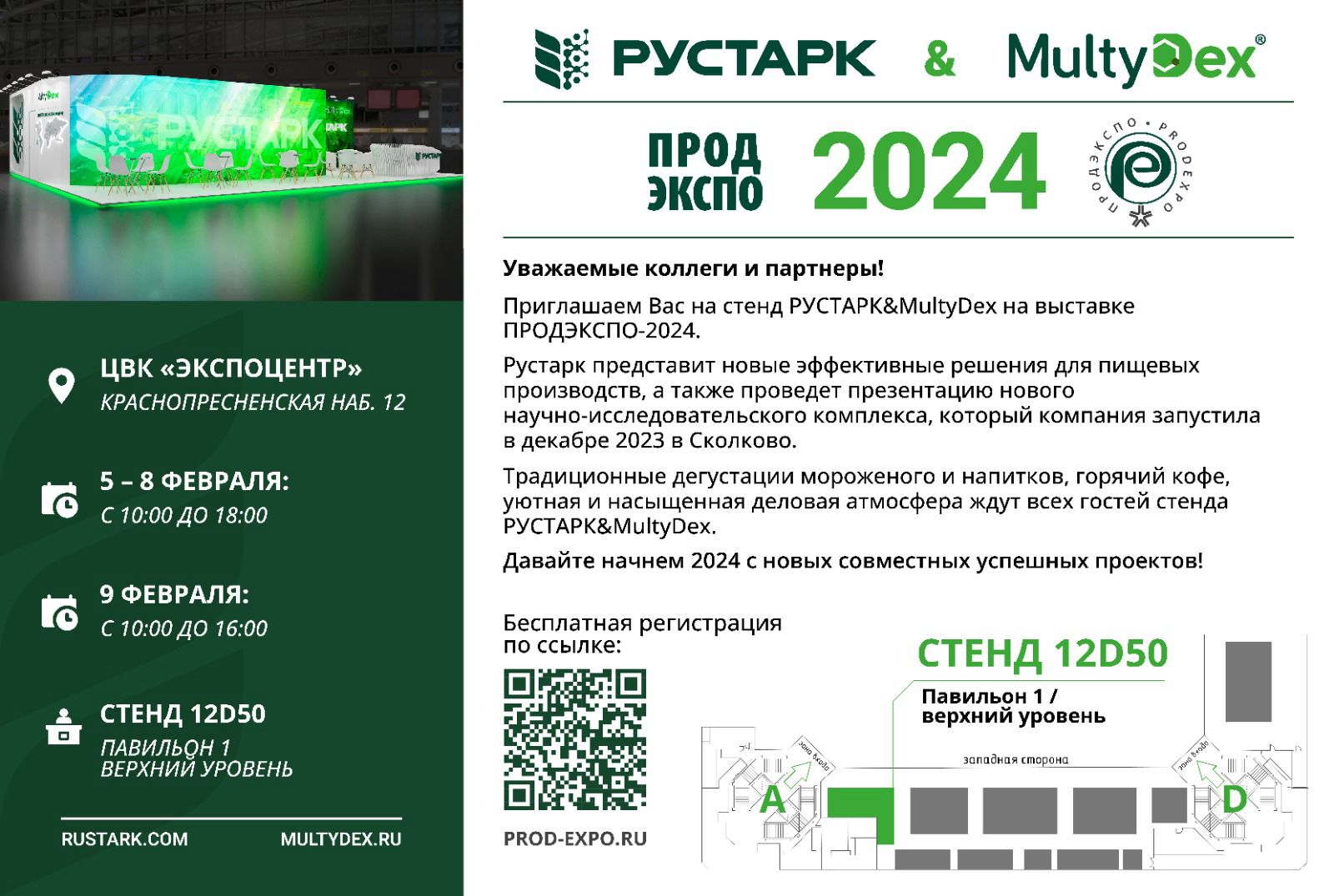 Рустарк представит свою продукцию, новые и эффективные решения для пищевых производств, а также проведет презентацию нового научно-исследовательского комплекса, который компания запустила в декабре 2023 на территории Сколково.